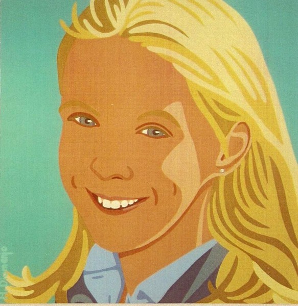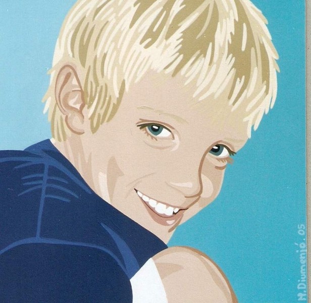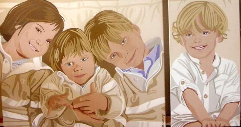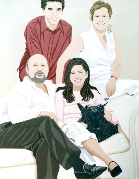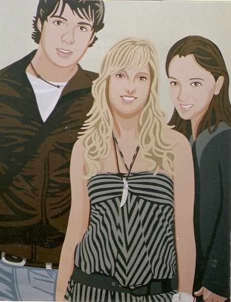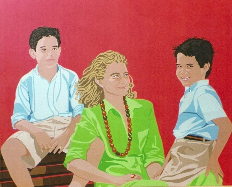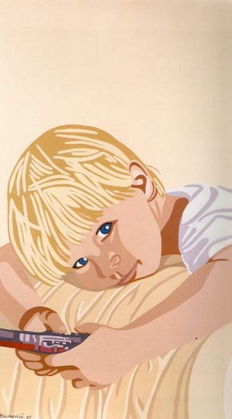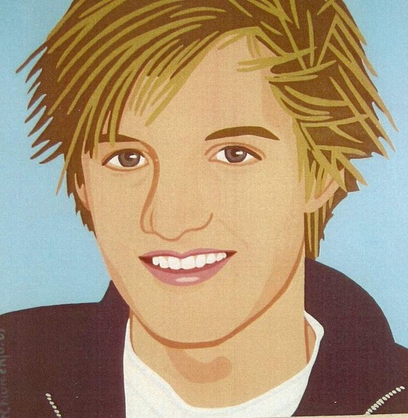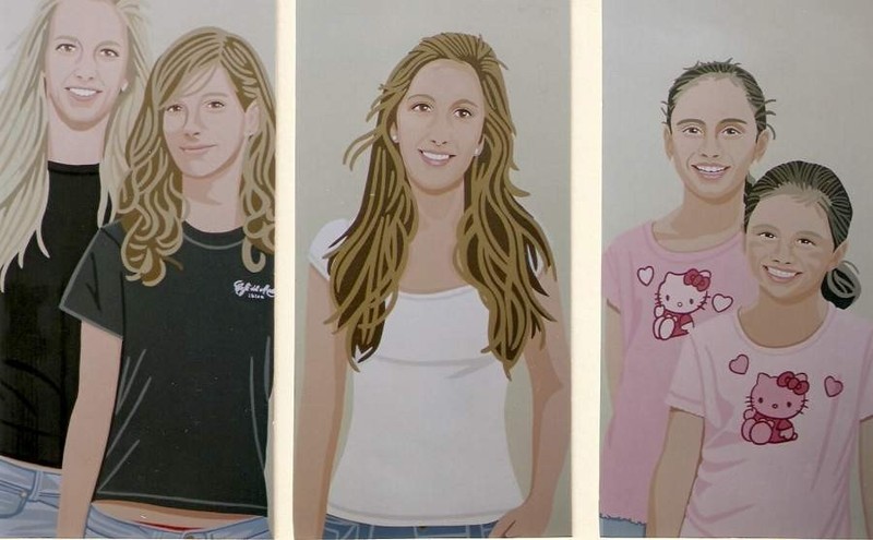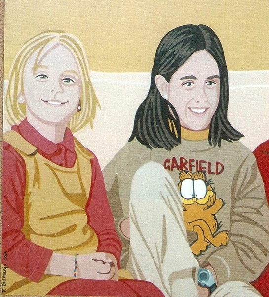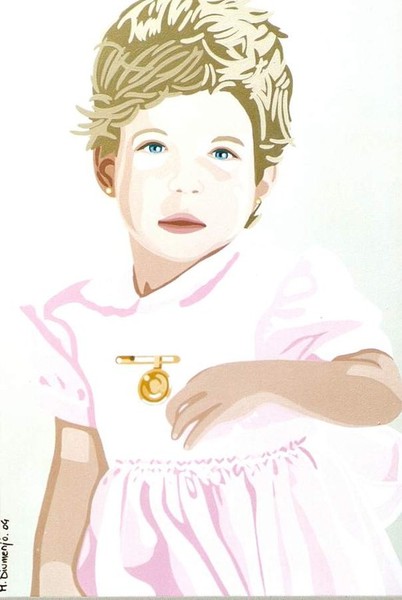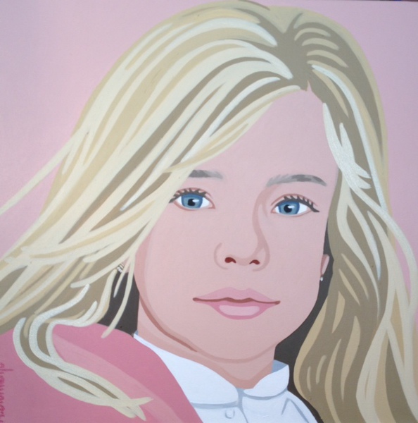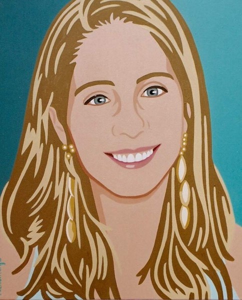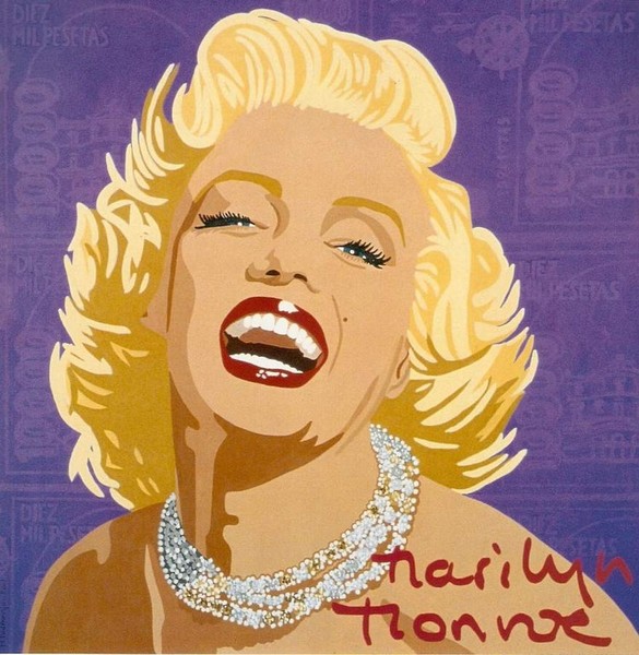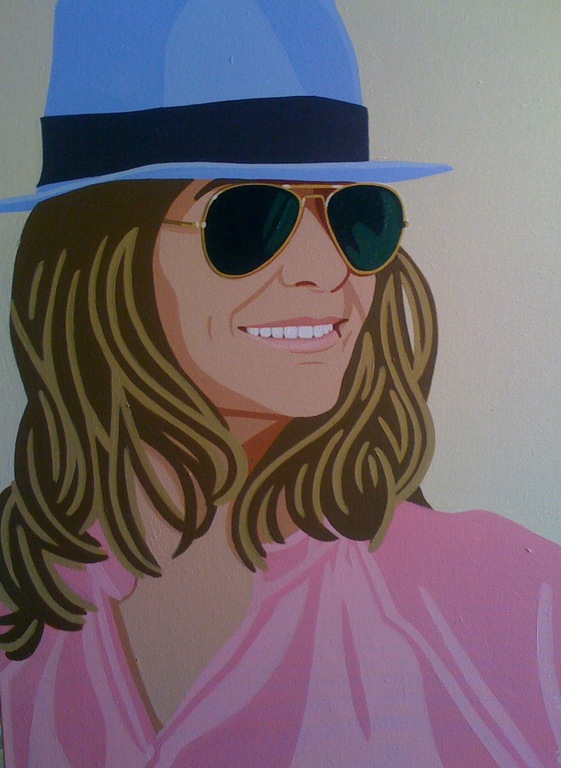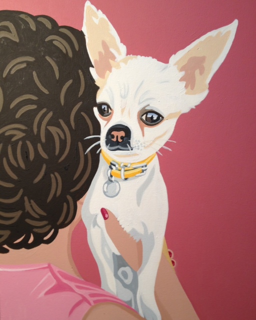 Pintora de retratos Pop, objetos varios, textos, etiquetas, etc