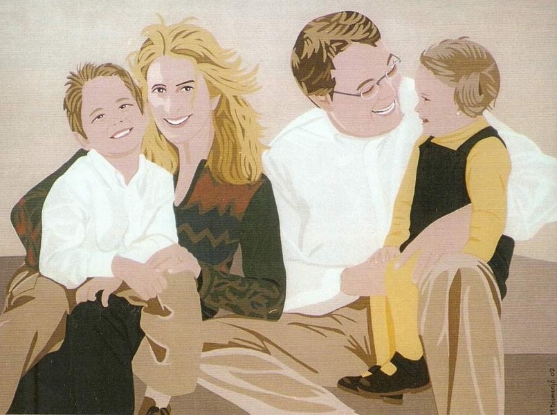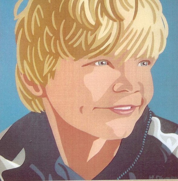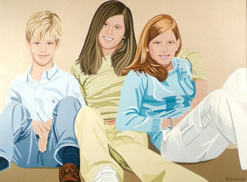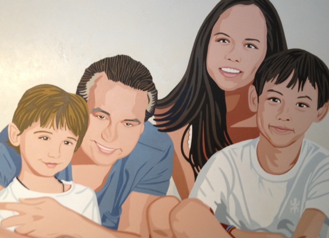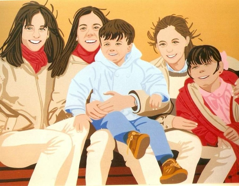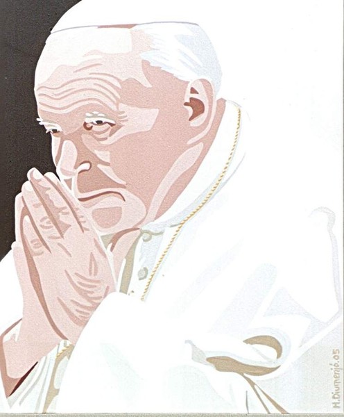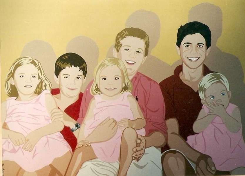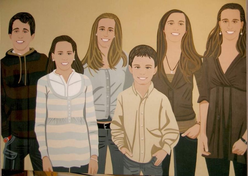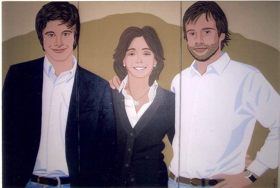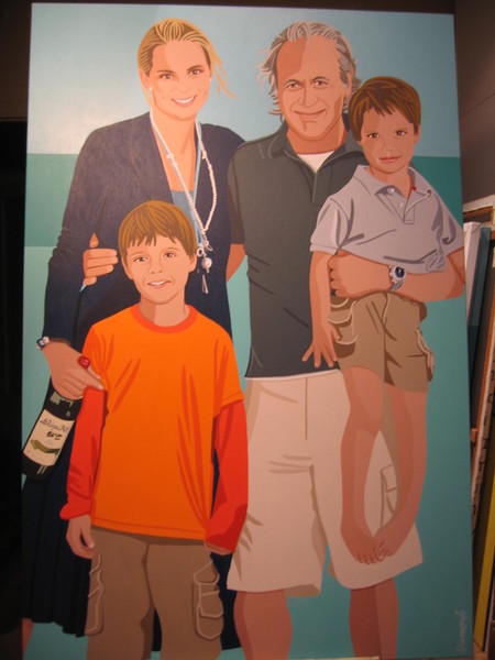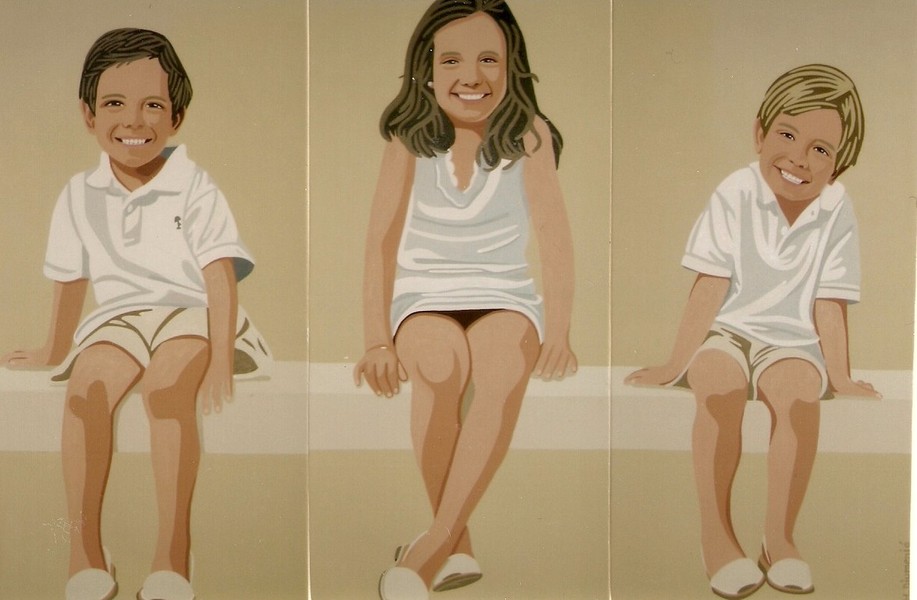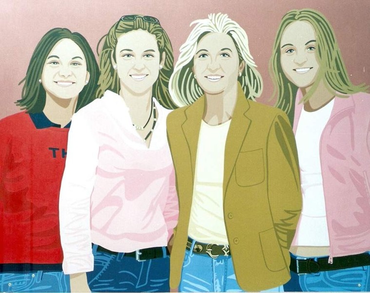 Pintora de retratos Pop, objetos varios, textos, etiquetas, etc